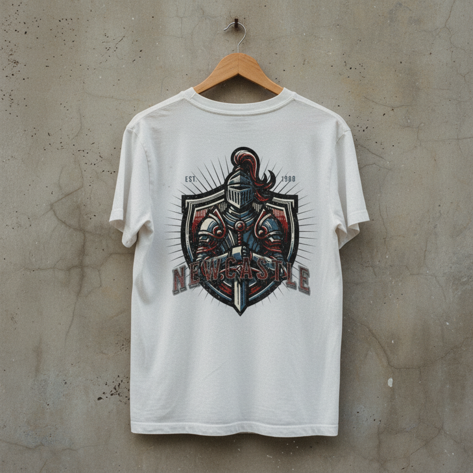 Forged in steel and built on tradition, this Newcastle-inspired design pays tribute to a city shaped by grit, loyalty, and hard football. Featuring a vintage knight crest with deep coal reds and steel blues, it’s a nod to battle-hardened supporters who wear their pride every week, win or lose.